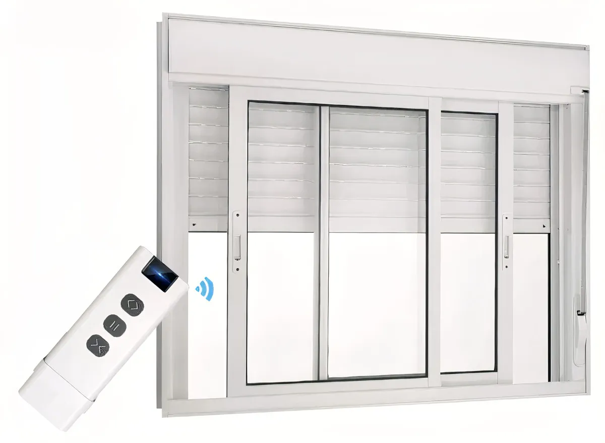 Janela em Alumínio Branco com Persiana Integrada Automática | 2 Folhas Móveis e Vidro Liso |Premium